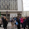 Landschaftsarchitekt und Spaziergangsleiter Dominik Scheuch startete den Rundgang am Rathausplatz (Planung: Boris Podrecca) vor dem Wegweiser der Kulturhauptstädte Europas, der derzeit mit all seinen Anzeigern ganz im Verkehrszeichen-Design den bereits seit 30 Jahren autofreien Freiraum ziert. Den Schriftzug „SANKT“ hatte er auf einem Schild mitgebracht – exakt abgestimmt auf die Farben der Europäischen Union. Von da aus brach die etwa 60-köpfige Gruppe auf, nicht ohne den verheißungsvollen Satz „Die Stadt ist mir heilig.“ zu hinterlassen.