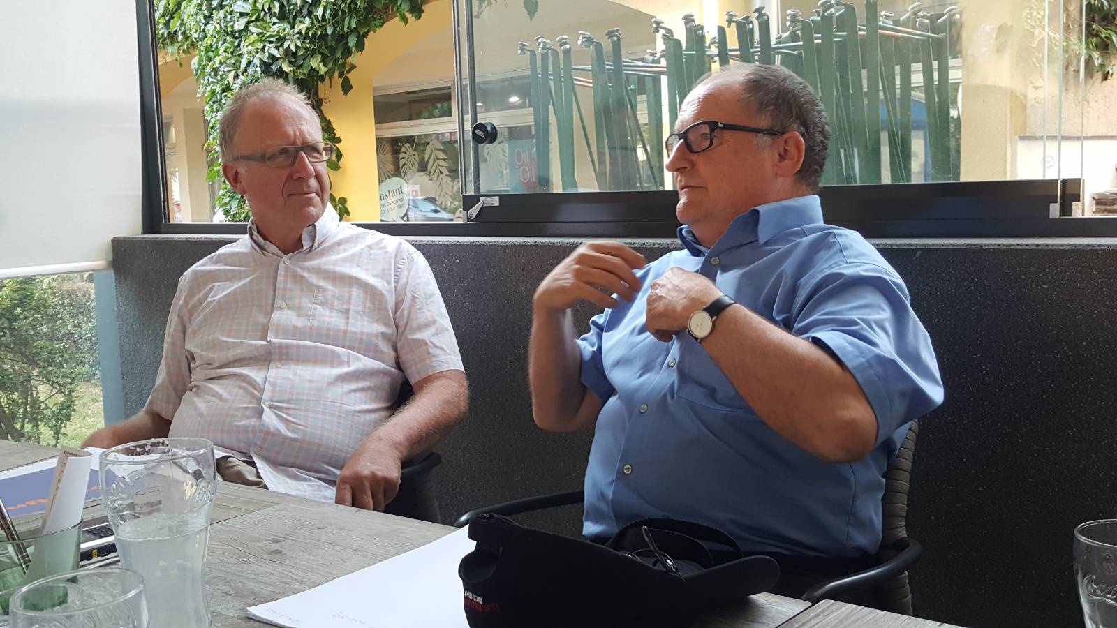 Im Rahmen der Kremser Ad hoc Gespräche trafen sich Gerold Kunz und Franz Sam auf Terrasse des Stadtcafés Ulrich.