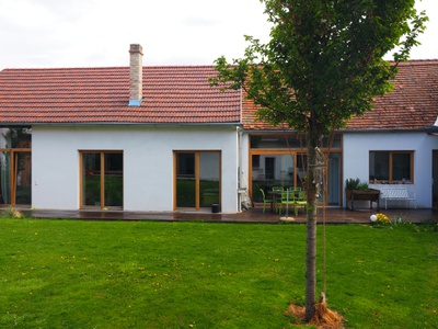 Das vermutlich im 19. Jahrhundert errichtete Vorstadthaus bestand aus drei straßenseitigen Räumen und einem hofseitigen Anbau aus den 1980ger Jahren. Trotz des schlechten baulichen Zustands entschieden sich die Auftraggeber:innen für die Erhaltung des Hauses, weil ihnen die wohlproportionierte, briefmarkenartige Straßenfassade mit der Sonne im Ziergiebel gut gefiel.
