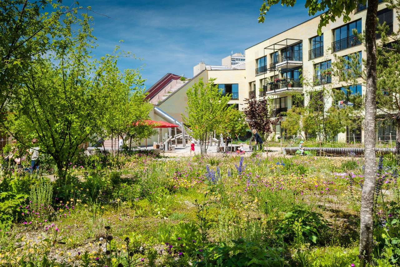 14.00 Uhr Schwerpunkt Freiraum & Wohnumfeld: Freiwillig daheim Über die Potentiale privater und gemeinschaftlicher Grünräume, das Bedürfnis nach einem Garten, über heutige Anforderungen an das Wohnumfeld und Beispiele einer alltagstauglichen Freiraumgestaltung – nicht zuletzt angesichts des Klimawandels Sabine Wolf, Zürich Raumplanerin und Landschaftsarchitektin, Partnerin bei Thiesen & Wolf, Projektleiterin der „Plattform Genossenschaften“