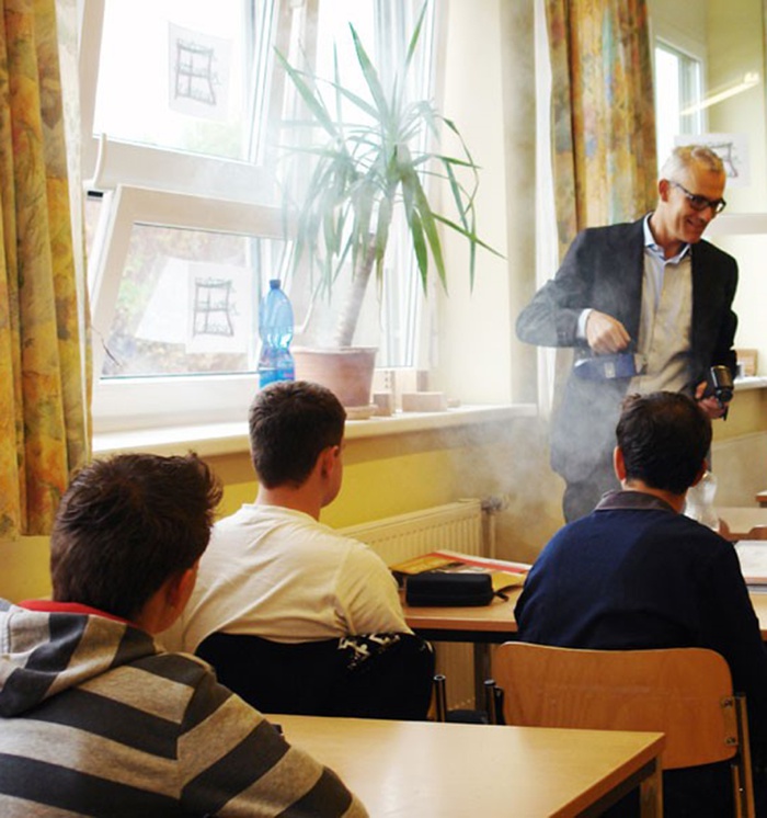 Für drei aus den vorgenannten Fachgebieten steht zu Beginn je ein Vortrag für 2 bis 6 gesamte Klassen (je nach räumlichen Möglichkeiten) auf dem Programm (ca. 45 Min).