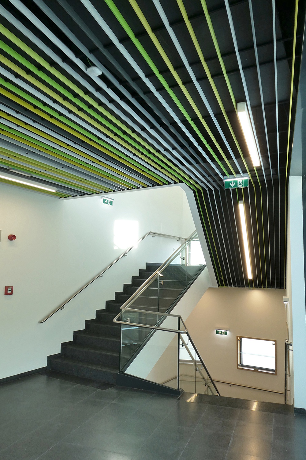 Parallel zum neuen Kreativturm wurden das Hauptgebäude saniert und die Trakte des Schulzentrums neu konfiguriert. Tragende Wände wurden teilweise versetzt oder ganz entfernt und schaffen so ein neues modernes Raumkonzept. Neben der umfassenden Sanierung der Sanitärräume sorgen im ganzen Haus neue Böden, Wände und abgehängte Decken mit LED-Beleuchtungen und einem ansprechenden Farbsystem für ein angenehmes Erscheinungsbild. Da die Funktionssanierung bei laufendem Betrieb von rund 1.000 SchülerInnen und der Administration durchgeführt wird, wurden Ausweichquartiere für die Klassen in zwei Containeranlagen geschaffen. Erschwerend kommt hinzu, dass besonders während der Maturazeit auf lärmarmes Bauen geachtet werden muss. Die Umsetzung des Projekts erfolgt in sieben Bauphasen und wird im Sommer 2019 seinen Abschluss finden.